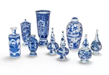 Ensemble de vases en porcelaine de chine, bleu et blanc dynastie Qing du 18 éme siècle.